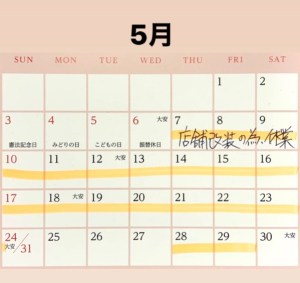 当店の営業は、5月6日までとなります。